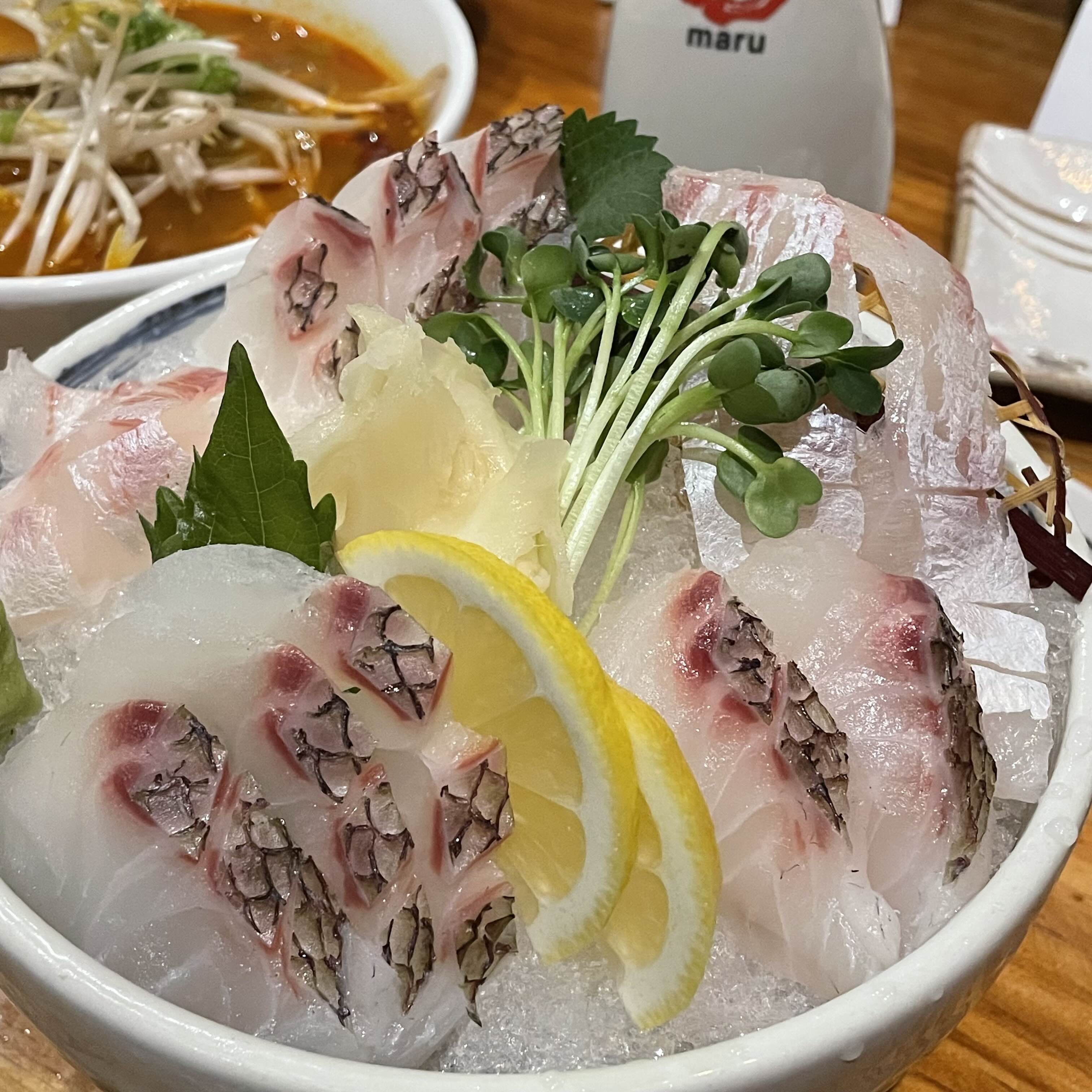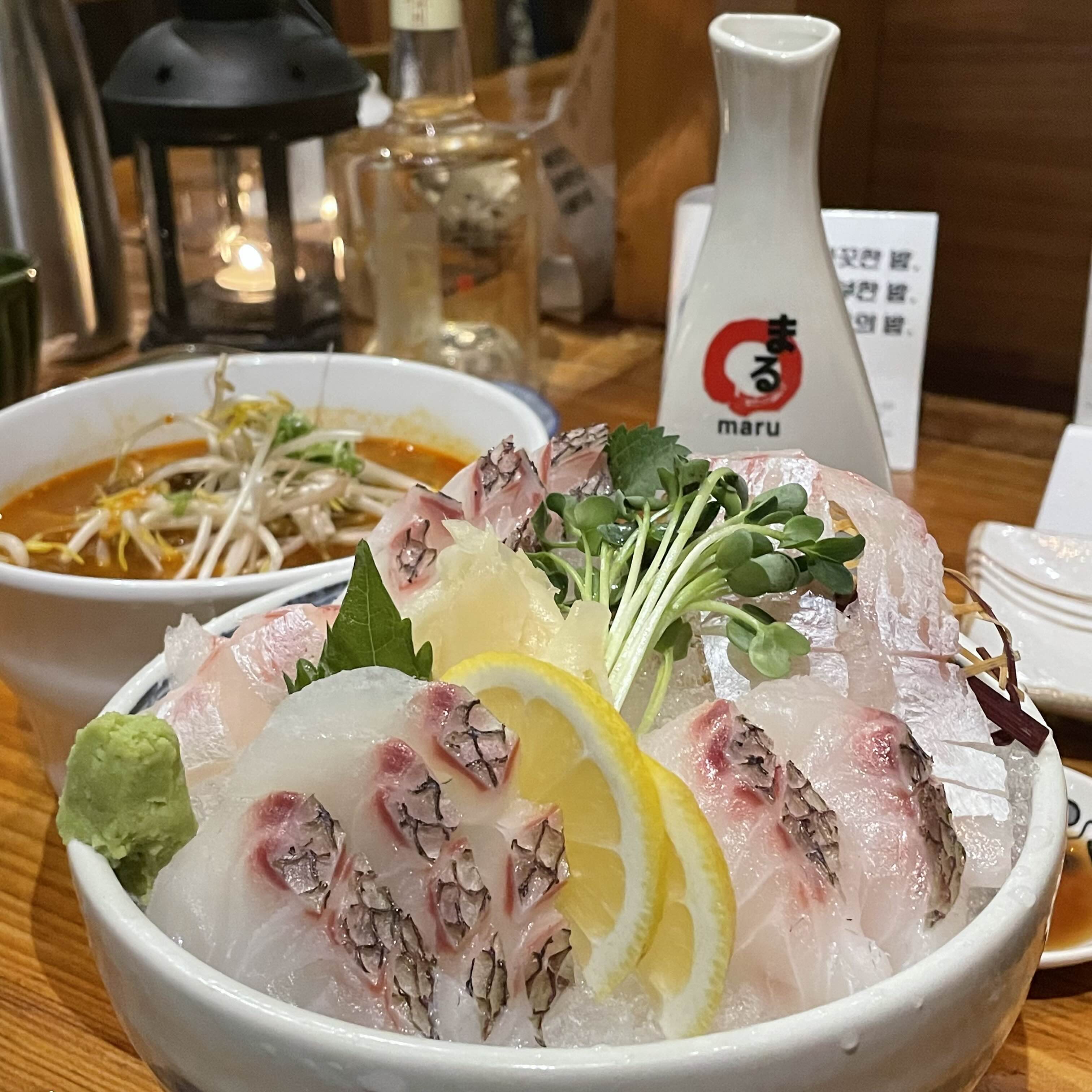 라고 메뉴판엔 써져있지만 도미 사시미인것,,!
